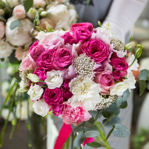 Спросите, какие сезонные цветы флорист посоветовал бы вам для экономии бюджета. Уточните вопрос доставки букета и бутоньерки жениху, цветочных композиций в ресторан, украшения свадебной арки и места церемонии. Поинтересуйтесь, есть ли возможность заказать букет-дублёр, если он вам нужен. Уточните сроки, когда вы ещё можете внести изменения по составу букета или количеству цветочных композиций.